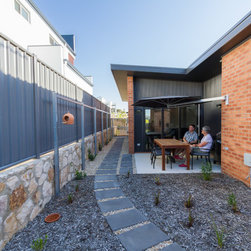 These down-sizer's came to us seeking a fresh start and a new lifestyle. They had purchased a very small block in the new suburb of Lawson, and wanted an energy efficient, space efficient home that would retain some backyard and provide them with a comfortable place to retire in.