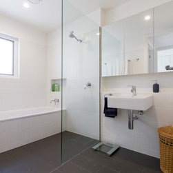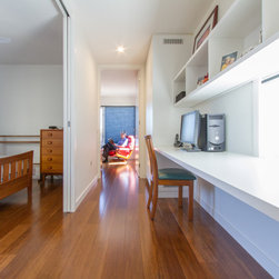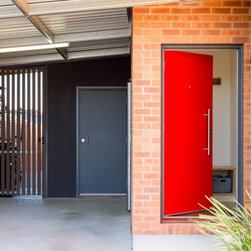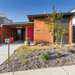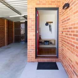 Affordability was addressed by focusing on space effectiveness and simple materials. Common clay bricks and charcoal metal cladding, a simple carport, and plain white joinery all contribute to a modest, timeless, cost effective home.