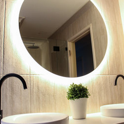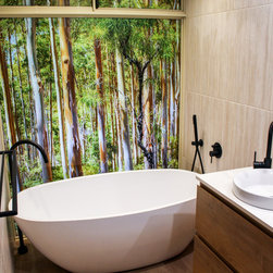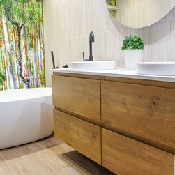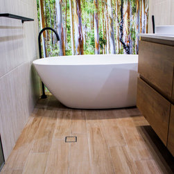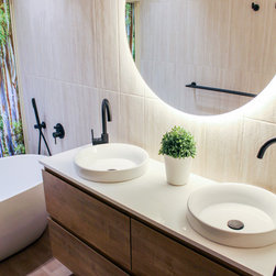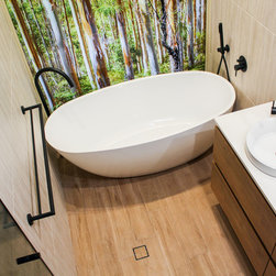 Freestanding Bath, Family Bathroom, LED Light Up Mirror, Alcove Shower, Semi Frameless Shower Screen, Mixer Diverter With Separate Hand Held, Hobless Shower, Full Height Tiling, Frameless Shower Screen, Double Vanity, Light Up Mirror, Custom Made Window With Image Print, Relaxing Bathroom, On the Ball Bathrooms, Bathroom Renovation Leeming