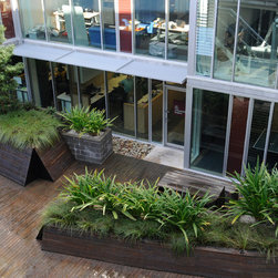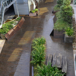 Lifestyle Working is a dynamic new workplace development designed to promote improved improved ways of balancing work and a healthy lifestyle. The design includes a semi-enclosed timber boardwalk punctuated by raised planters, open courtyard and restaurant cafe. The Lifestyle Working development has a five-star Australian Building Greenhouse Rating.
