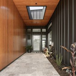 The external 3.6m high entryway serves as a stunning introduction, featuring a generous garden bed to the right and soaring ceilings that reach over 3.6 meters, complemented by a large roof opening that floods the interior with natural light.