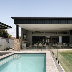 The main living areas seamlessly connect to an expansive exterior space through an impressive 9-meter-wide set of doors. This outdoor area features an impressive 3.6m high ceiling and is perfect for entertaining featuring an outdoor BBQ cabinetry area and a large swimming pool, epitomizing the essence of Queensland living.