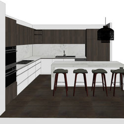 The kitchen and dining cabinetry were kept dark to let the sensual Statuario marble benchtop and splash back take centre stage. The warm palette of greens, yellows and ochres in the living room was inspired by the large Felicia Aroney artwork that ILI sourced.