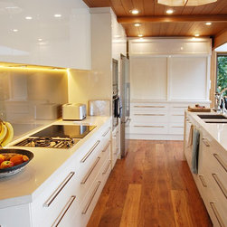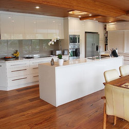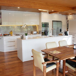 When you have a large kitchen dining area overlooking a full length verandah that overlooks a stunning harbour view, you would think that the kitchen would be a priority & the design of the kitchen would compliment the space to maximize everything that this space offers.