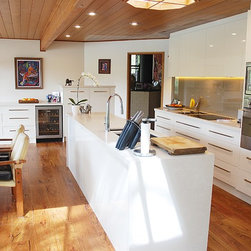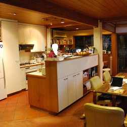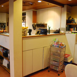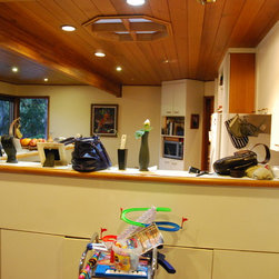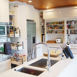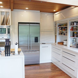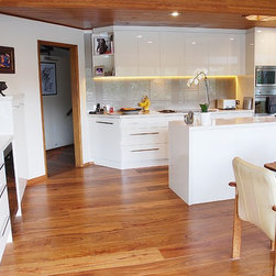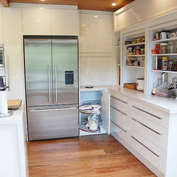 Our clients had both retired & they both spent considerable time in the kitchen & they wanted to make this space the highly functional entertainer it should be for enjoying their friends, family & grand children. They both spent considerable time in the kitchen & found the space extremely tight, as there was one way in & out. They found they were on top of one another all the time & there was continual competition for bench space & the utensil area. The dishwasher when down was also a hindrance.