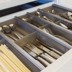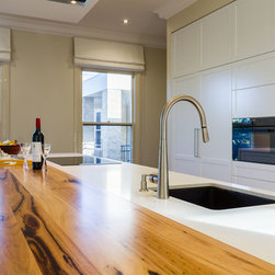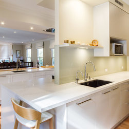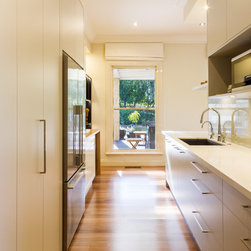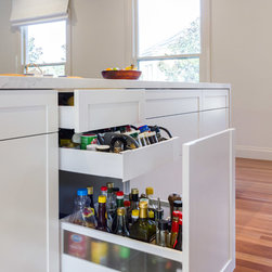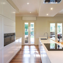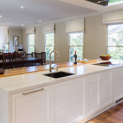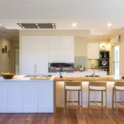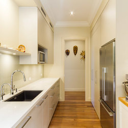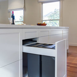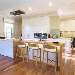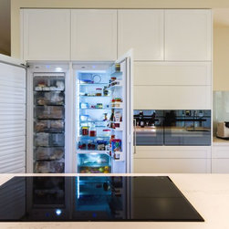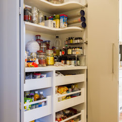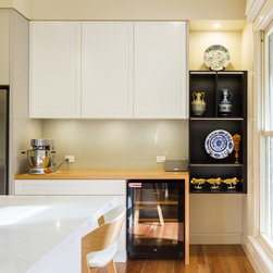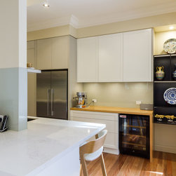 A modern take on the (generally more traditional) shaker door style has brought this kitchen to the next level of luxury. A calm and sophisticated space that boasts of storage and practical living - the perfect marriage. The butler's pantry facilitates the fridge, a sink and the dock for the ever important iRobot!