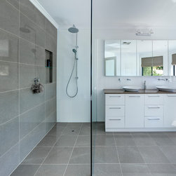 Generous storage is integrated throughout the design without compromising the minimalist feel. Mirrored shaving cabinets are recessed into the wall above a substantial vanity unit, while a recessed niche caters for shower shelving. LED lighting contributes to the relaxing atmosphere, with wall-mounted task lighting above the mirrors. The result is a tranquil space for the parents to retreat to and indulge in the “me time” they both deserve. The overall quality of the project has impressed the judges of all of Australia’s peak industry associations. In addition to the HIA Award, the project was also highly commended in the KBDi 2013 Design Awards (Large Bathroom).