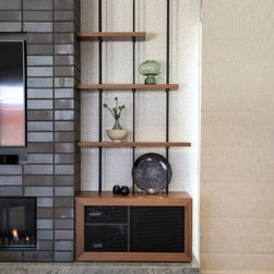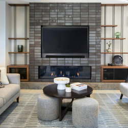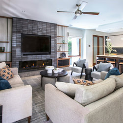 Through the use of form and texture, we gave these spaces added dimension and soul. What was a flat blank wall is now the focus for the Family Room and includes a fireplace, TV and storage.