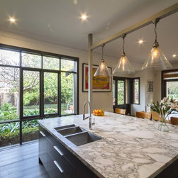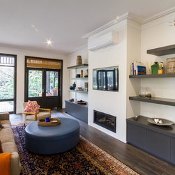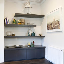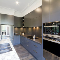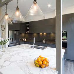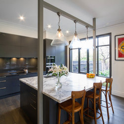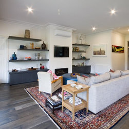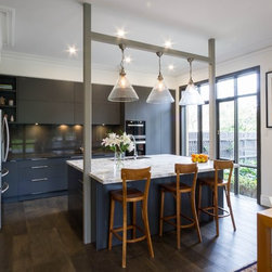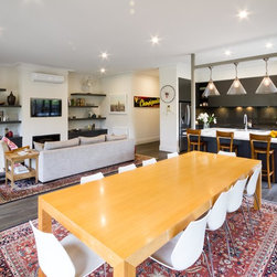 We often work closely with the very talented Interior Designer, Maree Howley of Beautiful Room, to create stunning kitchens. As you can see from the before and after images, the space needed to be opened up to become more workable. The beautiful big windows allow the light to flood in, meaning the dark kitchen cabinetry work perfectly and aren’t too heavy for the space. Adding in the matching buffets and floating shelves into the lounge room helps the two spaces tie together in their semi-industrial meets eclectic feel.
