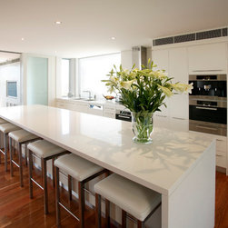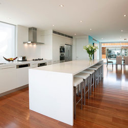 When designing a kitchen to suit a large, open-plan space it's critical that the proportions of the elements within the room are in keeping with the surrounding area. This Manly kitchen is a great example of how to design a highly functional room to suit a large space and the key is the impressive island bench.