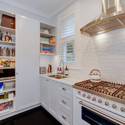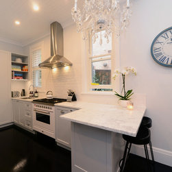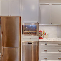 Marble Benchtops | Breakfast Bar with Shaker Profile | Integrated Wine Fridge