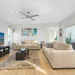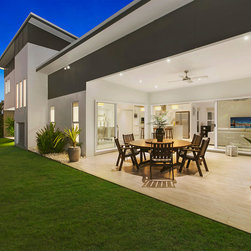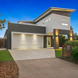 This New Residence was designed by DCM for a first home client in Brightwater Estate, Mountain Creek. The narrow site frontage and constraints due to easements and small lot area assisted us in the decision to move the Master Suite onto a second storey. This then opened up the Ground Floor & provided some decent yard space along with giving the house frontage a stronger street appeal.