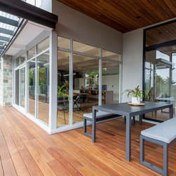 The site provided quite the challenge, it has beautiful sweeping views across the outer east of Melbourne, however it is very steep. The house also had several entry points, however no real sense of a focal point ‘front door’. One of the key goals was to improve access from the driveway to a formal front entry.