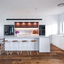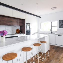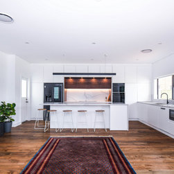 Our design team listened to our clients and created a modern open plan space with a big kitchen, living & dining, laundry and bar area.