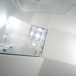 Amazing glass balustrade really brought the staircase to life. Beautifully designed herringbone tiled terrace made for a stylish outdoor living space.