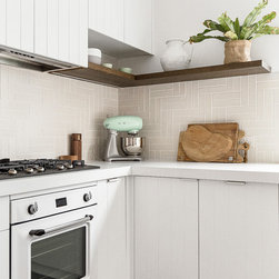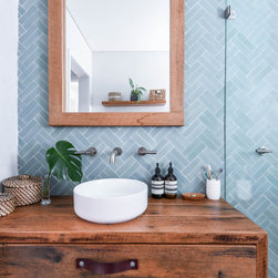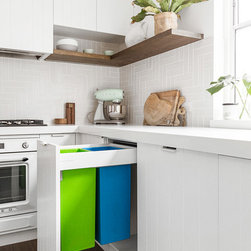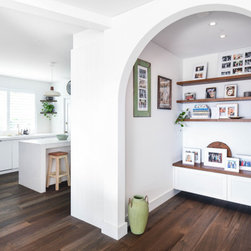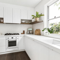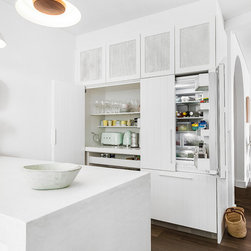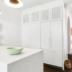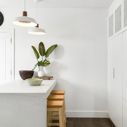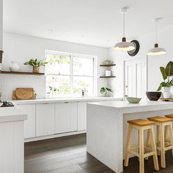 Our design team listened to our clients and created a beachy-style kitchen with huge amount of benchtop and storage space, seating area for three people and a pantry-appliance area.