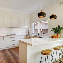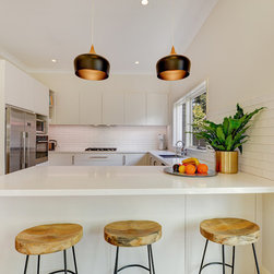 Our design team listened to our clients and created a modern U-shaped kitchen with a great amount of benchtop space and seating area for three people.
