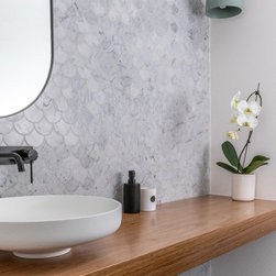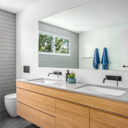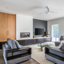 The existing lower level was reworked to allow a large open plan kitchen and living space, as well as new powder room, laundry & guest bathroom.