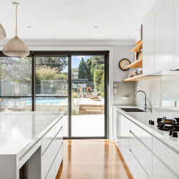 Our design team listened to our clients and created a big and bright open plan modern kitchen, butlers pantry, laundry and bathrooms.