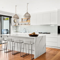 Modern Design | Butler Pantry | Waterfall Benchtop | Shark nose Joinery