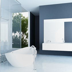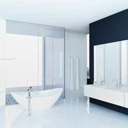 Modern Design | Monochrome Bathroom | Pebble Shower Flooring | Freestanding Bath
