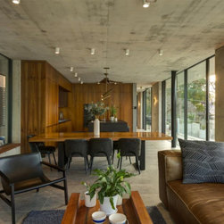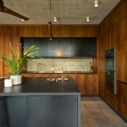 Modern Industrial Design | Dark Timber Cabinetry | Concrete Floors and Ceiling