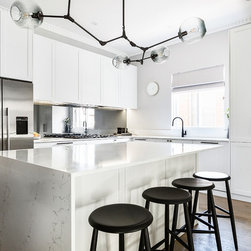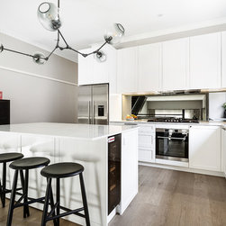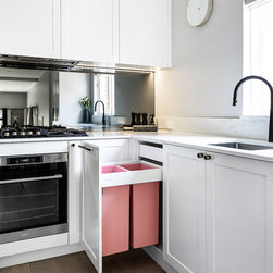 Modern Monochromatic Kitchen | Integrated Appliances | Mirrored Splashback