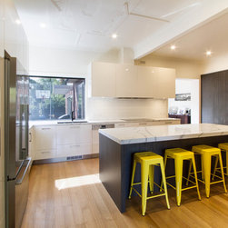 A change of space was needed for this kitchen renovation to make the kitchen larger and more functional. The house was built in the 1930s so the general layout was not working for well for the modern family. Our Designer, Suzzanne, cleverly changed the space to open up the kitchen, allow more natural light and use an otherwise wasted area in the additional formal dining room. The house now flows from one space to another, the kitchen has ample storage and most importantly, functions perfectly for an entertaining family.