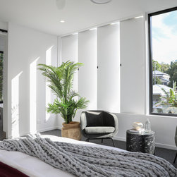 Relaxing and modern master bedroom with a luxurious master suite.