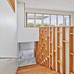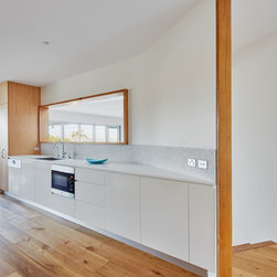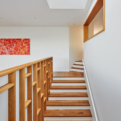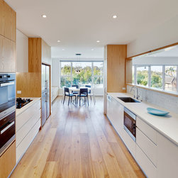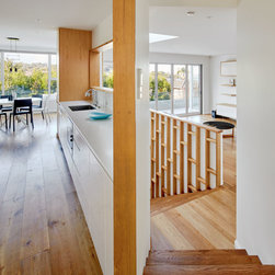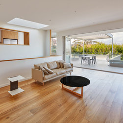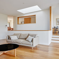 This refurbishment included linking and updating the kitchen and breakfast area with the living rooms, remodelling the stair, updating lighting and finishes and making the outdoor spaces more inviting. The palette of materials is a combination of oak, honed marble and white. Natural light was increased via larger doors and openings, higher ceilings, a skylight and operable sun shading.