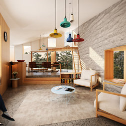 This home is in tune with the Mullum landscape while bringing the family closer to nature. Bushland sightlines are maximised, while solar access will keep the home cool in summer and warm in winter, and bathed in natural light year-round. With rooms arranged around a striking central courtyard, cross ventilation draws fresh air and natural breezes through the home, while the home itself ‘meanders’ down the natural contours, defining different spatial experiences and a contemporary undulating roof scape.