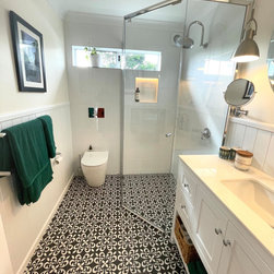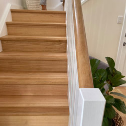 The 2nd floor, which is the core of the house including the kitchen, living and dining space has been designed as the heart of the home, featuring timber flooring throughout the living areas which reference the strong, clean lines of modernist sophisticated design. The new kitchen, including a large island bench provide a seamless extension to the living space.