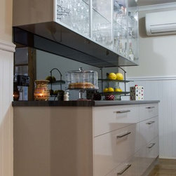 Our clients' old kitchen and dining area was very dark and drab so they wanted to lighten it yet maintain some character. The slate floors needed to stay so Glen worked around this, their lifestyle and budget and created something incredibly inviting and much more inspiring. In addition,our clients wanted a bar style buffet made to fit into their dining space.