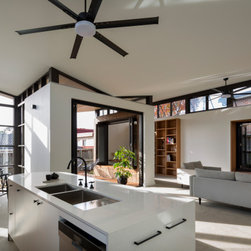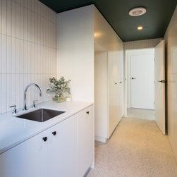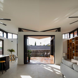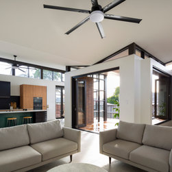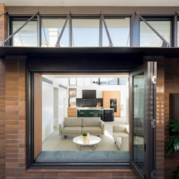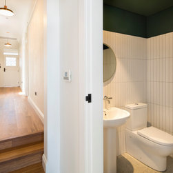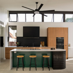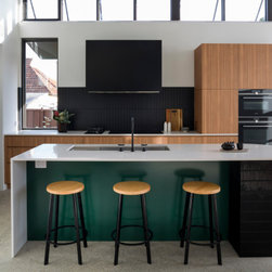 From the street you would be forgiven for not realising this is a completely new build. The front of the home was designed to be in keeping with the surrounding area. Not only was it part of the local council regulations, but the owners wanted their home to have the heritage charm of the neighbourhood that they love. Behind that gorgeous red front door this home opens out to a spectacular light filled contemporary living space. With high ceilings, large bi-folds, floor to ceiling glass and highlight windows wrapping around the entire space, this is a gorgeous family home that allows the outside in. The dramatic roofline is a standout feature that gives this home some definite WOW factor.