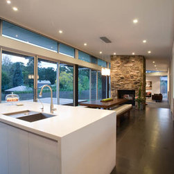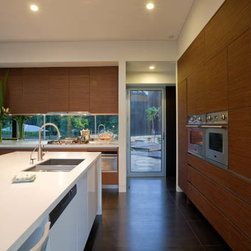 Contemporary style Laminate Kitchen with Corian Bench Tops.