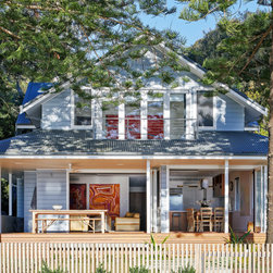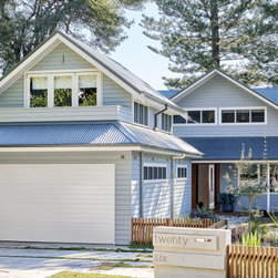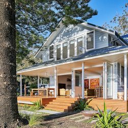 This home was a complete renovation of an existing beachside home, with a stunning location on Pittwater north of Sydney. The existing house was built in the early 1980s and was in need of updating but did not justify demolition. The decision was taken to keep the existing house and design a sympathetic addition to provide additional accommodation and transform the interior layout. This is a contemporary home tailored to our clients’ lifestyle, as they transition from the hustle and bustle of busy family life to a quieter and more relaxed life by the beach.