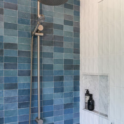 We totally overhauled both upstairs bathrooms creating character and practicality in both. Phase II of the project will follow with upgrades to the laundry, and a powder room that packs some punch.