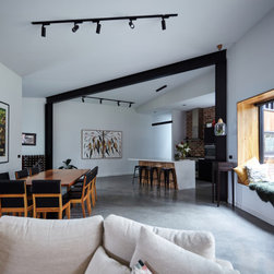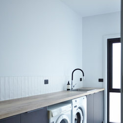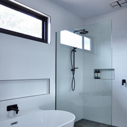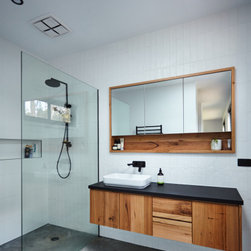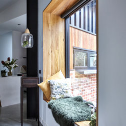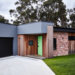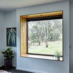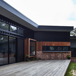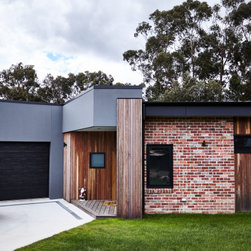 This medium sized family home sits neatly in amongst its more standard mates but the front door with its pop of colour tell us that something special hides beyond. The house features passive solar design, recycled brick and natural wood throughout. The concrete slab helps to regulate the temperature of the house on cold Ballarat winter nights as well as those really stinking hot days. This home features a fireplace but the house is comfortable regardless of using it.