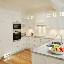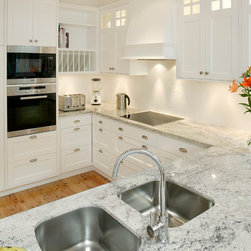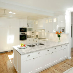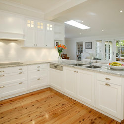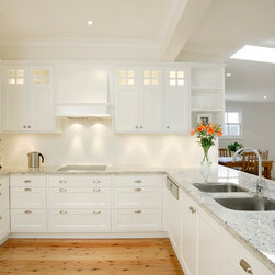 This Oatlands kitchen was in desperate need of an overhaul. The back of the house was completely renovated and the removal of walls brought the kitchen into the main living area. These lucky owners have fully integrated the refrigerator, rangehood, sink and dishwasher. There is ample storage in this elegant kitchen, to maximise space and ease of traffic. Increased benchtop space allowed for plenty of preparation room while the incorporation of display cabinets and plate racks serves as a stunning design feature and focal point.