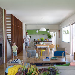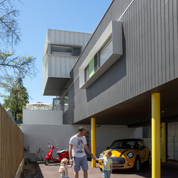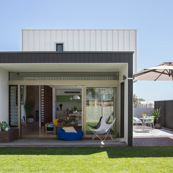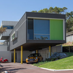 New home in beachside suburb of perth. Simple stacking boxes over three levels provide 4 bedrooms, 2 living rooms, 2 bathrooms, a powderroom and external spaces.