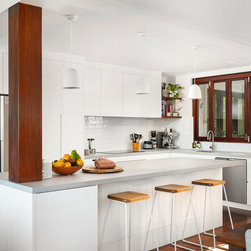 Open-Plan Coastal Kitchen & Dining | Concrete Benchtops | V-Groove Joinery