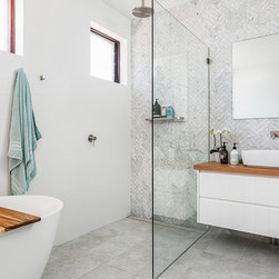 Our design team listened to our clients and created a big and bright open plan beachy-style kitchen. We also renovated their laundry and main bathroom tying up the look of the rest of the home.
