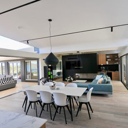 With panoramic views over Sailors bay, this modern architecturally designed home has been built to take full advantage of its amazing outlook. This family home excites from the first impression, a stunning sandstone fence, steel beams and butterfly roof create the ultimate curb appeal. Inside the bespoke kitchen is streamlined and opens to a family room complete with Eco Fireplace, custom cabinetry, high ceilings and huge commercial grade sliding doors complete with highlight windows throughout. The BIC Construction team are proud to be part of this project and thank our clients for choosing us to build this wonderful home.
