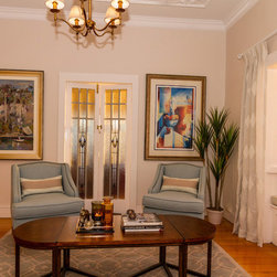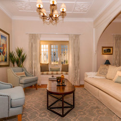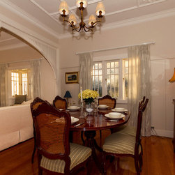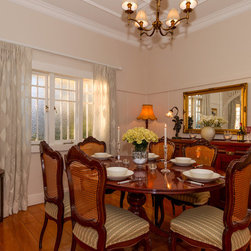 The client has a beautiful home full of original features and had an existing dining table/chairs, buffet and artwork for us to work with. We expanded on the rest by selecting relevant pieces, to create gorgeous living spaces that have a classic, elegant, timeless style about them. We re-painted the all the internal walls and hung beautiful relaxed patterned linen curtains. As well as all new lighting and accessories, which has brought life and interest to the home.