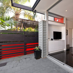 courtyard, indoor outdoor living, sliding doors, patio