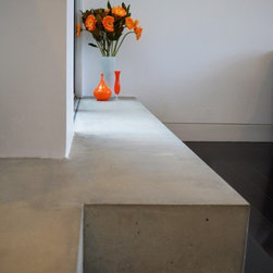 courtyard, indoor outdoor living, polished concrete, study