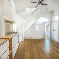 Addition and Extension project - Heritage House at corner. Involved the removal of ground floor's floorboards, ground floor ceiling, and 1st floor's roof structure. Introduction of new structural steel elements and new roof structure. Addition of roof top terrace abd extension of workshop area at the back of the property.