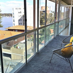 • Enclosed glass balcony joining the two bedrooms and the living area