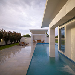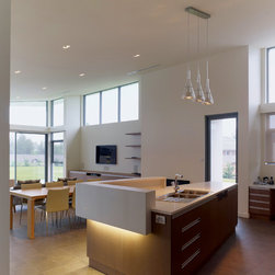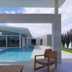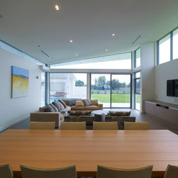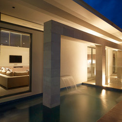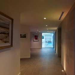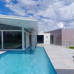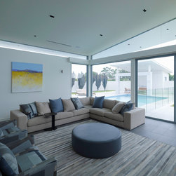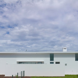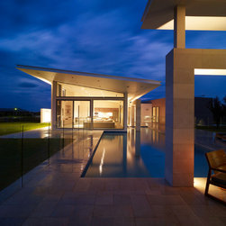 This residence was conceived as two distinct volumes with contrasting programmes (public versus private) connected by a central entry lobby / gallery. The building form and materiality were designed to reflect these separate functions, with the public wing being a dynamic lightweight form and the private wing being a static masonry form.