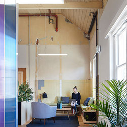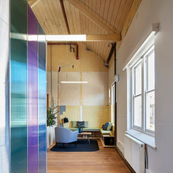 These elements form a colourful and playful background within which to understand the Polyglot mindset, ethos and passion. Now for our clients Polygot - a childrens theatre company - the adults too can be "at the heart of their art". Polyglot proves you can make significant and uplifting transformations even on tight budgets and with limitations on what you are permitted to do with the base building around you.